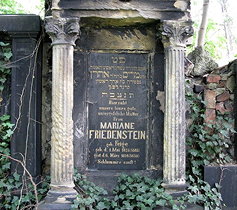 — Photograph of the gravestone for Mariane FRIEDENSTEIN geb. FEIGE (1825-1894), first seen online and then photographed in 2011 on a visit to the Kattowitz (Katowice)...